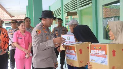 PROBOLINGGO,– Kapolres Probolinggo AKBP M Wahyudin Latif, melaksanakan kegiatan bakti sosial dengan memberikan bantuan sembako kepada warga terdampak banjir dan jembatan putus di Kecamatan Tiris, Kabupaten Probolinggo, Sabtu (13/12/2025).