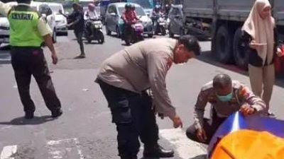 Seorang pelajar laki .laki tewas usai sepeda motor yang dikendainya jatuh ke tengah kolong truk gandeng hino warna hijau.