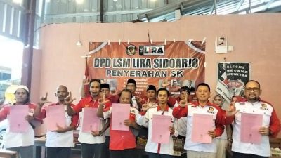 Sidoarjo – Dalam rangka menindaklanjuti Instruksi Presiden Republik Indonesia serta kebijakan Menteri Keuangan RI terkait penguatan pengawasan Dana Desa, Bupati LSM Lumbung Informasi Rakyat (LIRA) DPD Kabupaten Sidoarjo, Winarno, secara resmi menyerahkan Surat Keputusan (SK) Camat LSM LIRA dan SK Bidang Investigasi kepada jajaran pengurus LSM LIRA Kabupaten Sidoarjo.